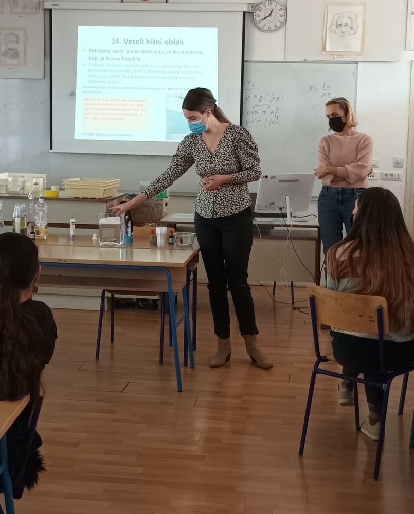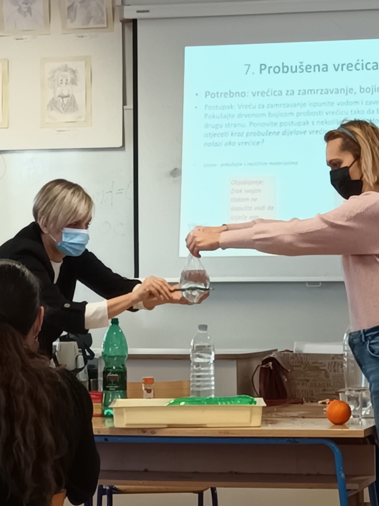 U subotu 15. siječnja 2022. godine u OŠ Šimuna Kožičića Benje održana je druga po redu radionica, a tema je bila „Voda“. „Zašto se grožđice podižu i spuštaju u čaši s mineralnom vodom? Zašto voda ne istječe i što se nalazi oko vrećice? Zašto i kako nastaje kiša? – neka su od pitanja kojima se bavilo na radionici.