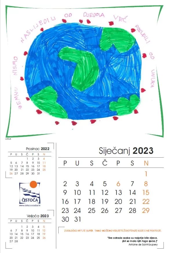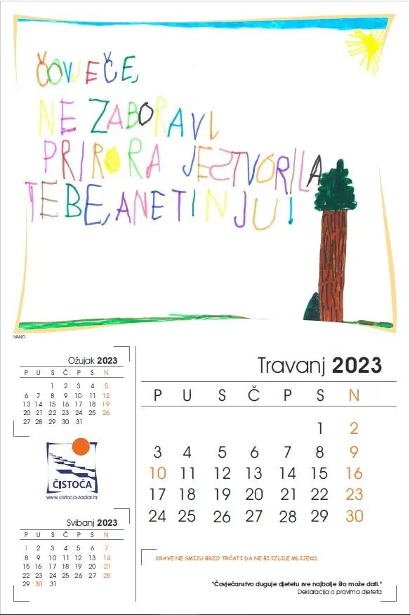 Svojim likovnim radovima, djeca PO Višnjik obogatila su i sudjelovala u izradi kalendara tvrtke Čistoća.